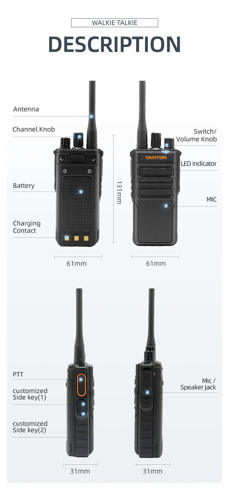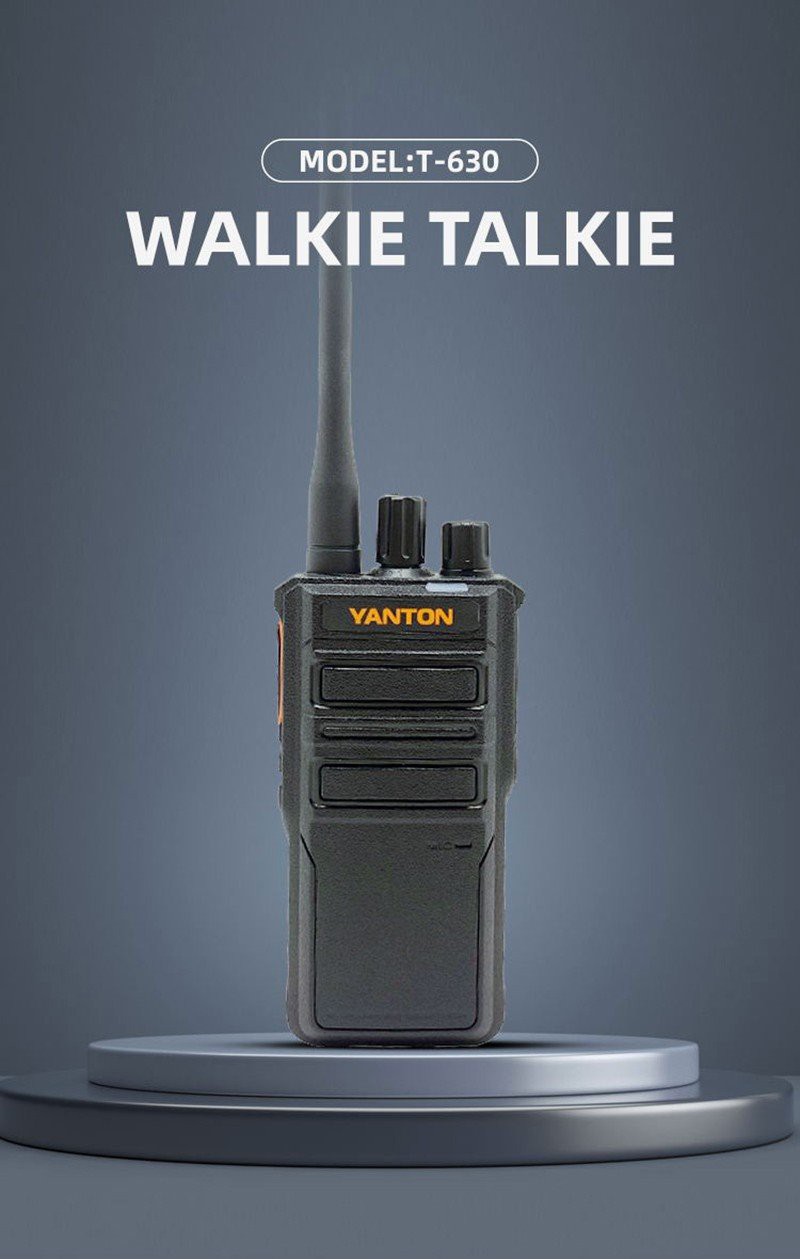 T-630는 주파수 범위가 UHF 400-480MHz인 전문 무전기입니다. 가장 큰 특징은 통화 거리가 길어서 환경에 거의 영향을 미치지 않으면서 3-8킬로미터에 도달할 수 있다는 것입니다. 전문 무전기는 일반적으로 건설 현장, 자산 관리, 공장 작업장 및 기타 행사에서 사용됩니다. 조작은 비교적 간단합니다. 디지털 버튼은 없고 채널 수, 전원 공급 장치 및 볼륨을 제어하는 두 개의 노브만 있습니다.